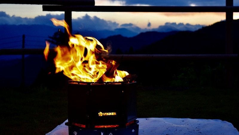 二次燃焼することで、煙は少なく大きくキレイな炎で焚火が楽しめます。焚火が終わった後、薪の燃え残りはなく灰の量が少ないないのもポイントです。